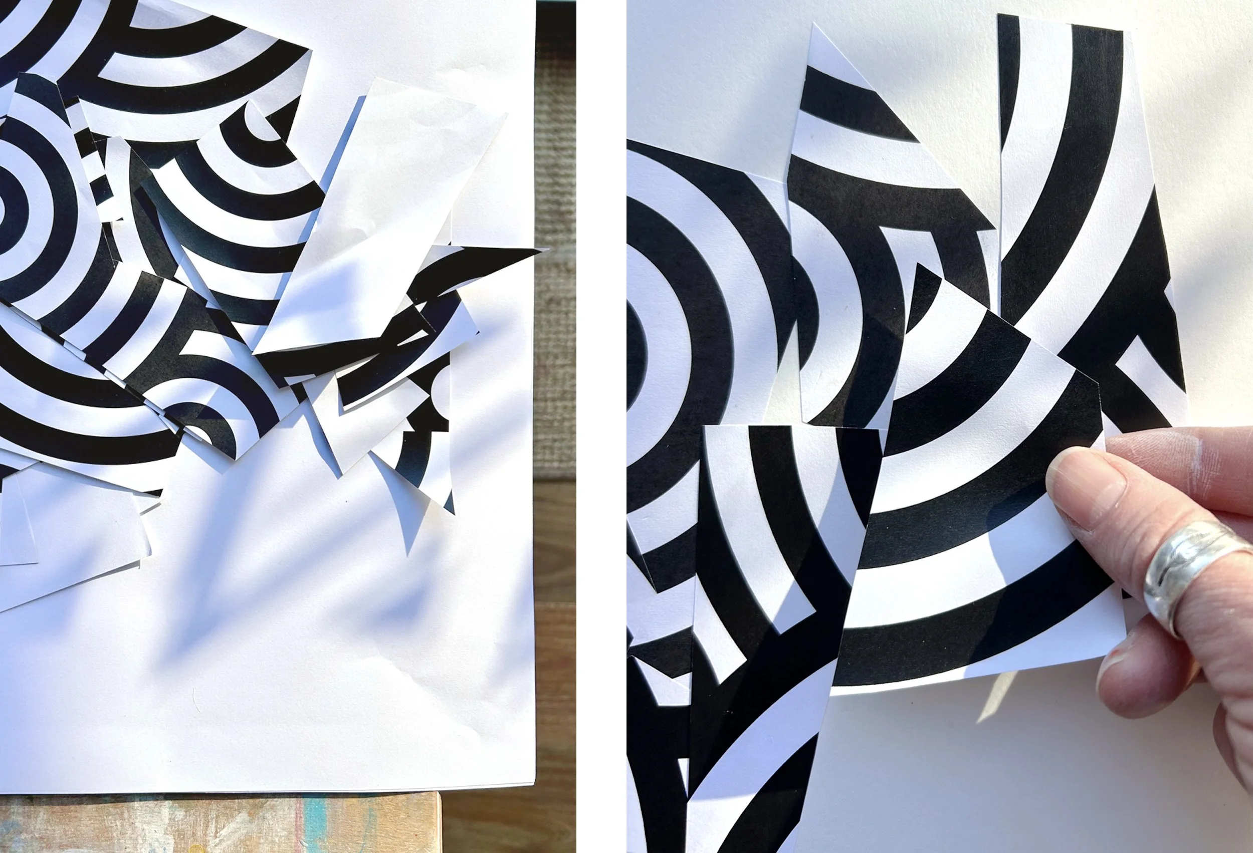 She explores ideas around fragmentation, interference, continuity and disruption through the interplay of geometric pattern & vibrant colour.